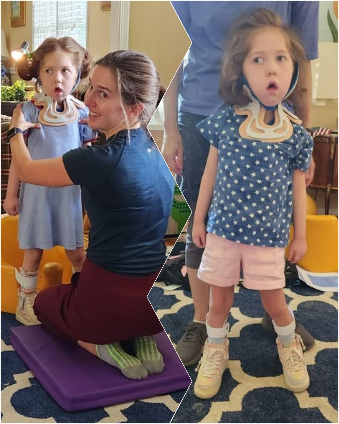With the brace, Catherine began achieving milestones that once seemed out of reach. She gained improved head control, which allowed her to sit upright for longer periods and gradually interact with the world around her in a more active way. Simple moments—looking around, responding to sounds, and engaging with her environment—became meaningful breakthroughs.