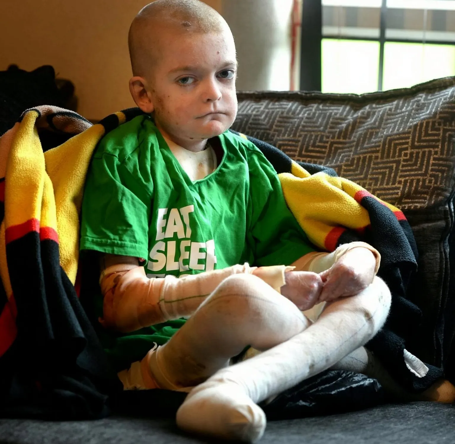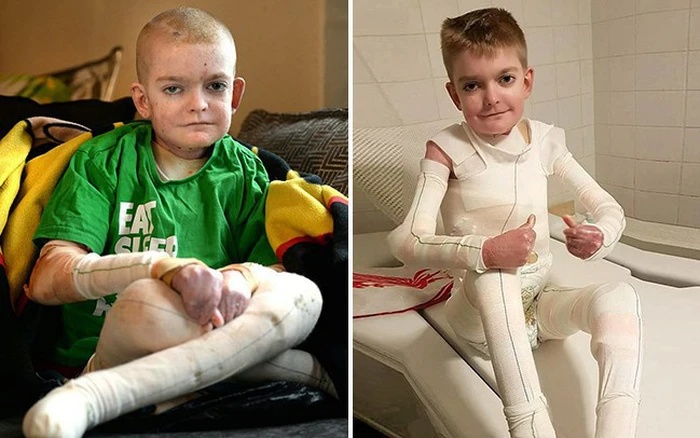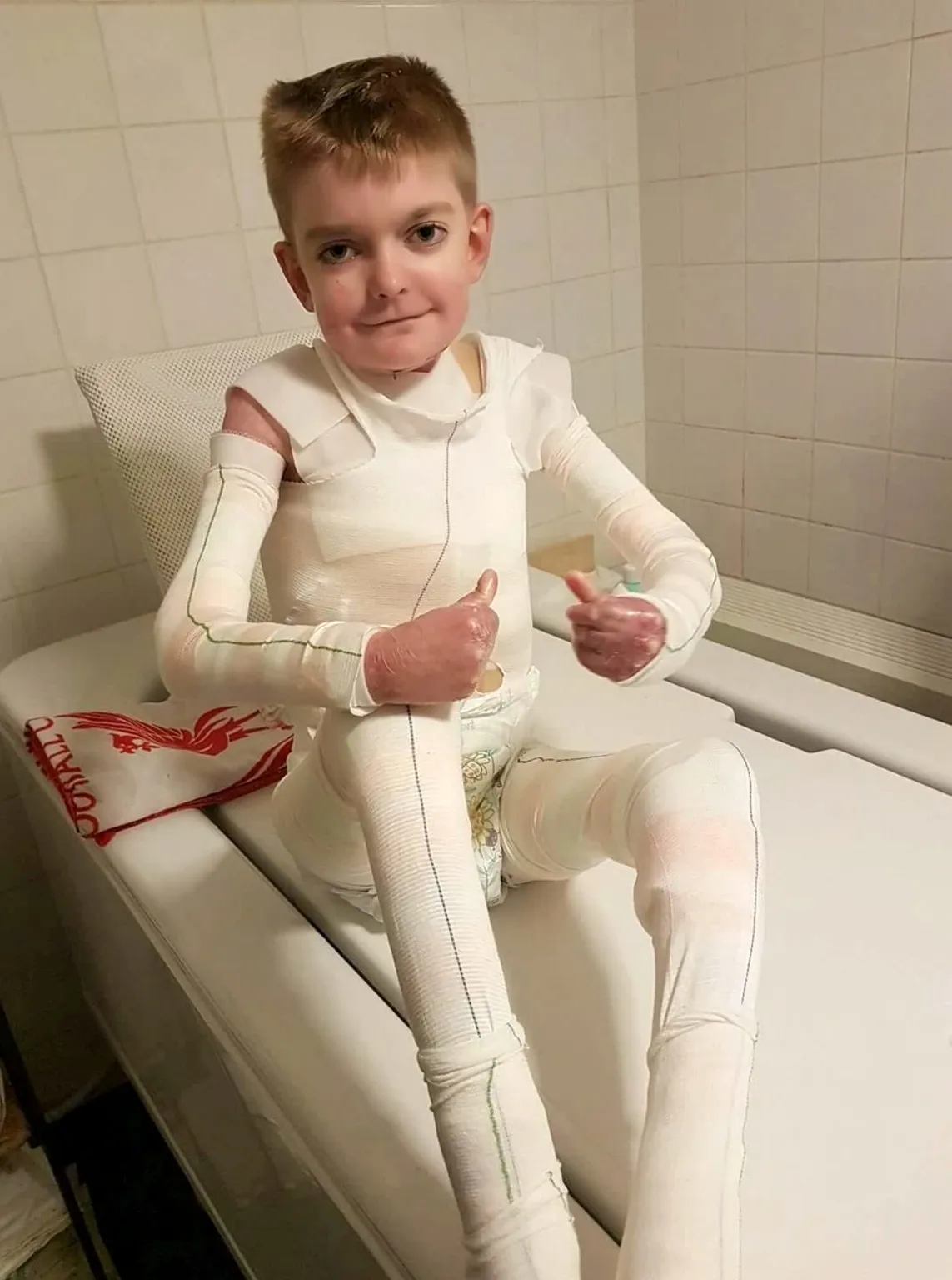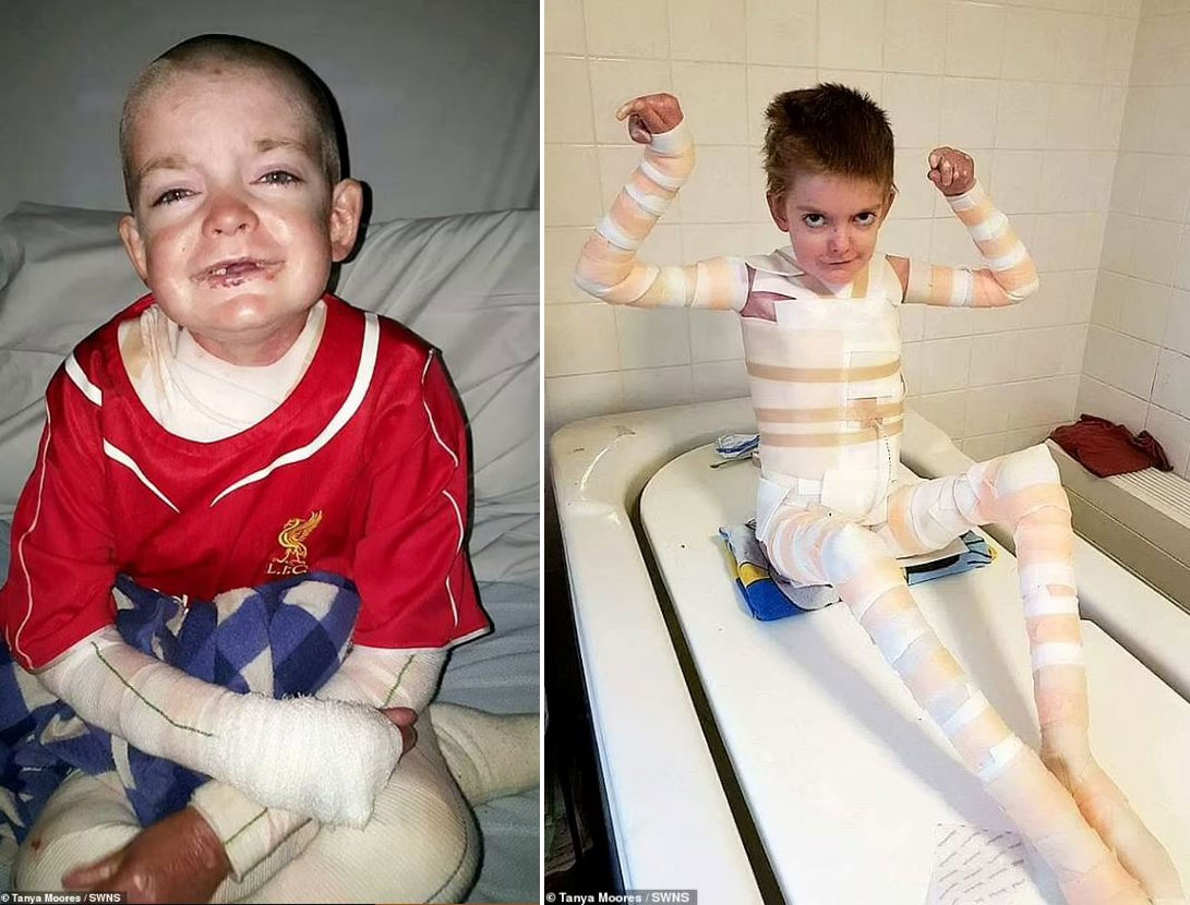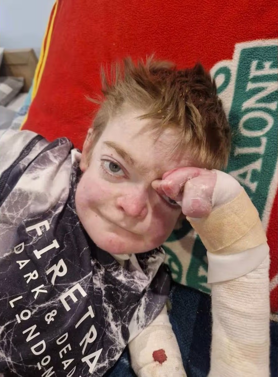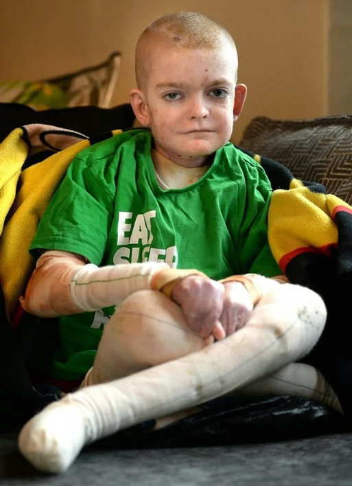 He is now reliant on a wheelchair as he is unable to straighten his legs due to the fusing of the skin at the back of his knees.