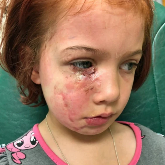 Paige Woody, 41, from Crestview, Florida, USA, shared the most terrifying moment of her life: witnessing her young daughter, Zoey, being attacked by two aggressive dogs from a neighbor’s house a year ago. The two pit bulls lunged at Zoey, biting and injuring her face, leaving severe damage and even affecting her eyes.