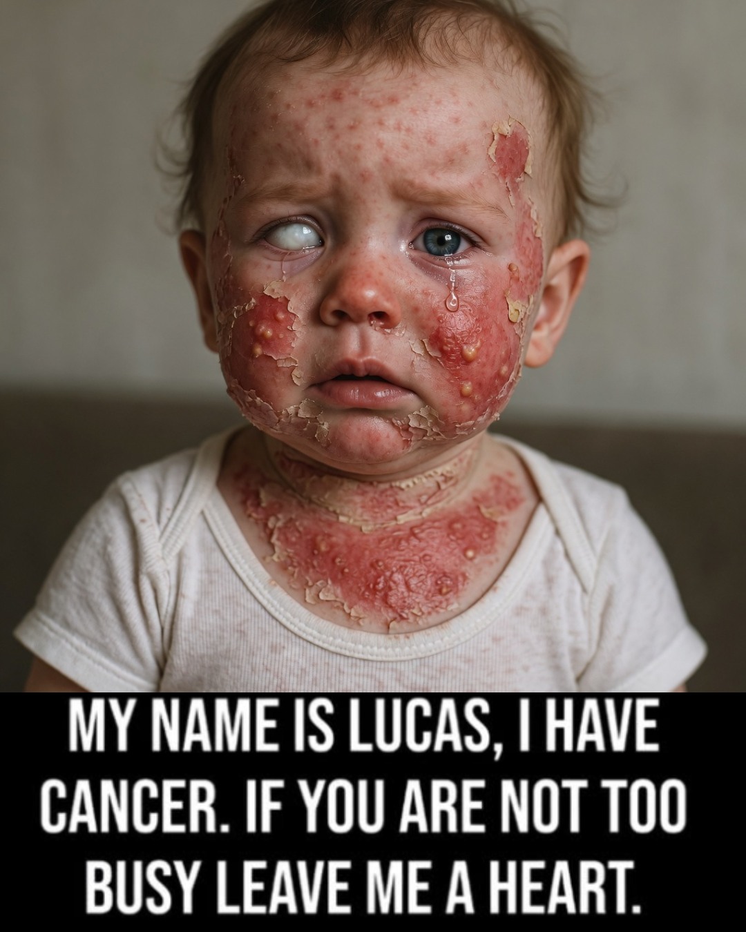 Now Lucas remains in a sterile hospital room, weakened by treatment, his fragile body suffering from severe dermatitis, covered in painful rashes that burn and bleed. He lies there without the comforting hand that once held his through every injection, every sleepless night, every moment of fear. The silence around him feels almost unbearable.