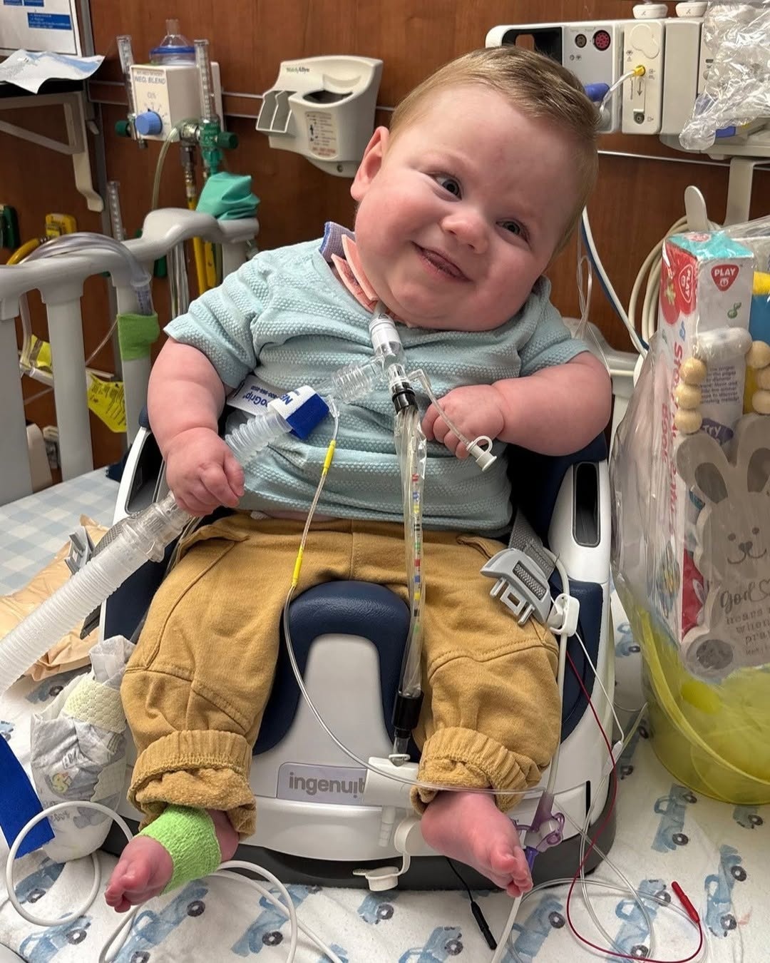 Colsen — who had his breathing tube removed at the 145-day mark, and now weighs almost 21 lbs. — has been through a lot throughout his stay. But from his time as an “itty bitty” baby to now, the infant has been smiling through it all, she told the local outlet.