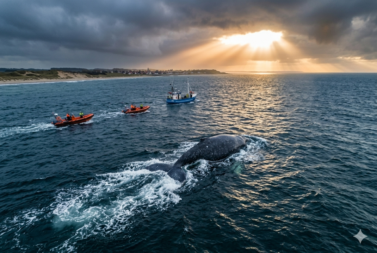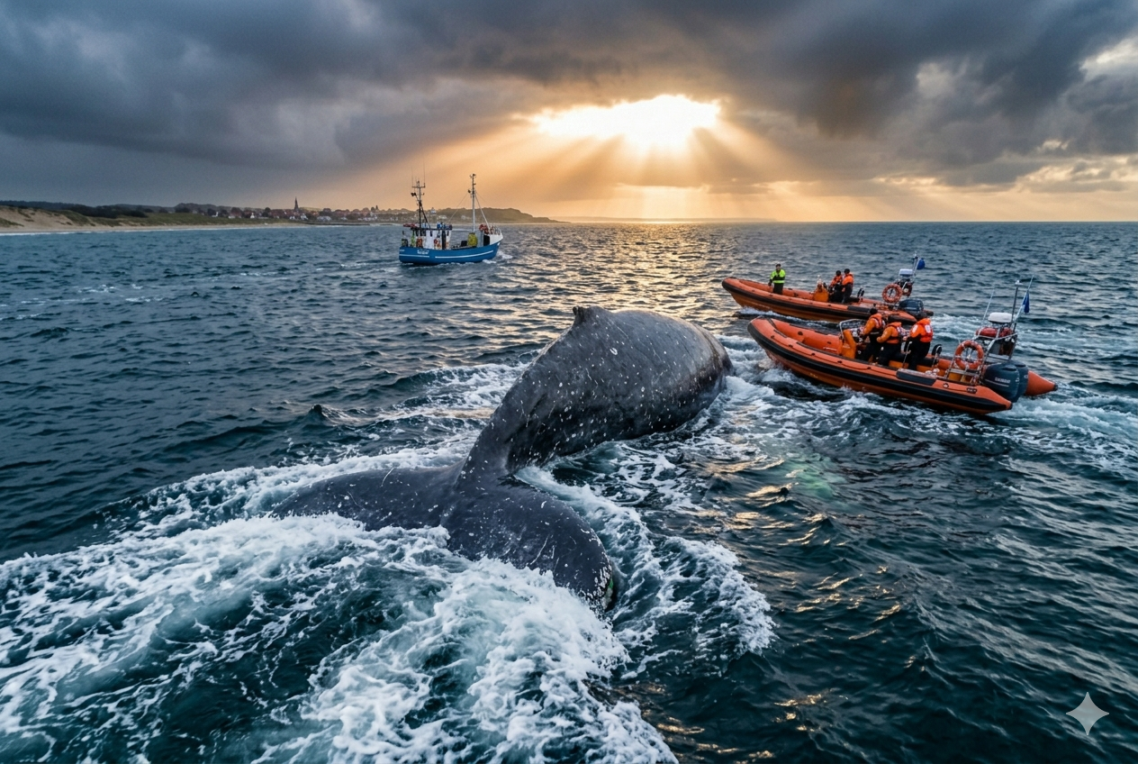 A surge of hope and relief is sweeping across the Baltic as Timmy, the mighty humpback whale, has finally freed himself after a grueling three-week struggle along Germany’s coastline. What began as a desperate race against time has now transformed into a remarkable tale of resilience and courage — as Timmy is once again moving independently, slowly but surely heading back toward the vast, open sea.