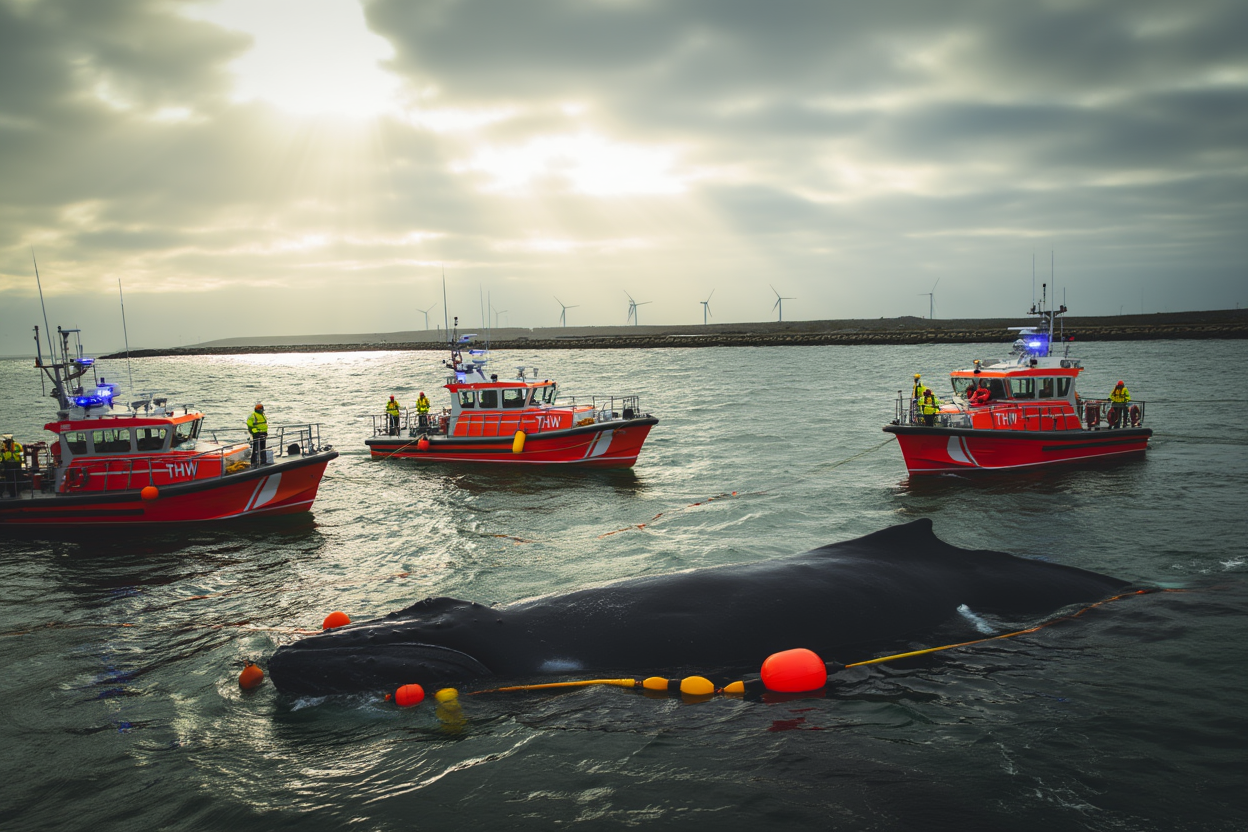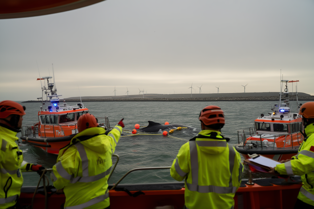 Timmy’s saga began in late March, when the 13.5-meter-long whale became stranded off the coast of Germany near Wismar. As he became weaker, rescue efforts escalated, with experts using everything from pontoons to air cushions to try to lift the massive creature from the shallow depths. Yet despite the best efforts of marine biologists, veterinarians, and volunteer teams, Timmy remained stuck, his body battered by the forces of the waves and the time spent stranded in perilous conditions.