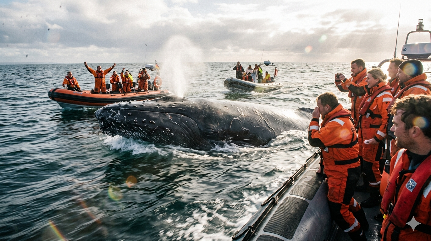 After three long weeks of being stranded along Germany’s coastline, Timmy, the resilient humpback whale, has finally broken free and begun swimming on his own. For weeks, the massive whale had been stuck in shallow waters near Wismar, exhausted, injured, and unable to make the journey back to the open sea. His fate seemed uncertain as rescue efforts failed, and the clock was ticking. But against all odds, nature provided the lift Timmy needed. Rising water levels and strengthening winds offered the perfect moment for the giant to finally escape, and he seized it.