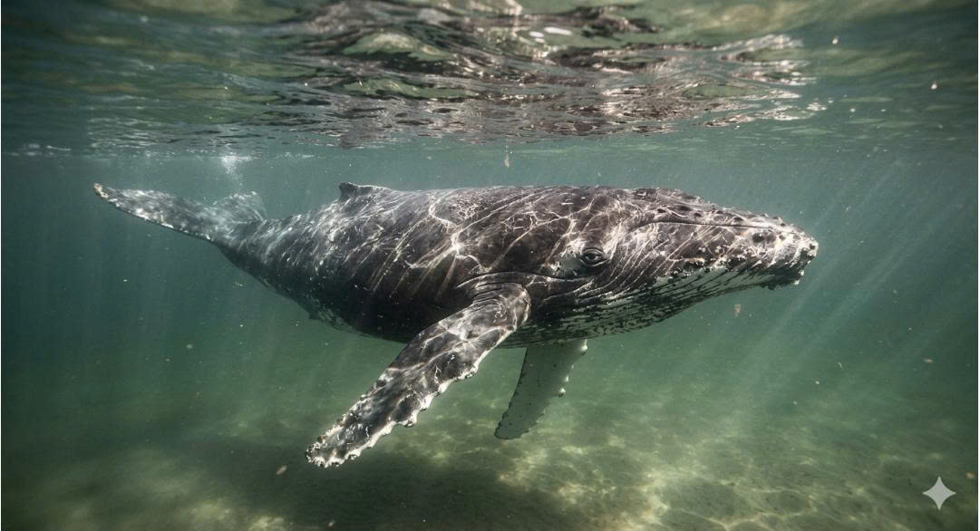 With each powerful stroke of his tail, Timmy slowly began to swim away from the shore. Once immobilized by the shallow waters, he is now free to move forward — a testament to his resilience, determination, and the incredible power of nature to intervene in times of crisis.