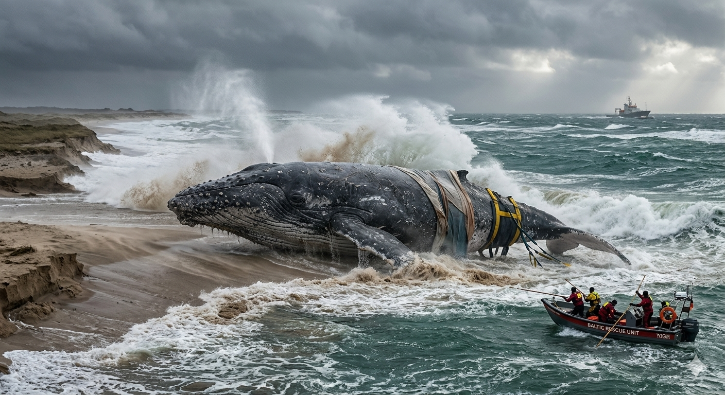 After three long weeks stranded along Germany’s coastline, Timmy, the resilient humpback whale, has broken free and is now swimming on his own. Thanks to rising water levels and strengthening winds, the exhausted giant was finally lifted, enabling him to begin moving away from the shore that had held him captive for so long.