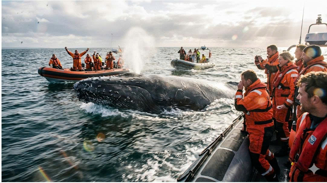 Rescue vessels, which had worked tirelessly to save him, now follow Timmy at a respectful distance. Their role is no longer one of intervention but of escort — guiding the whale toward the vast ocean where he belongs. This moment, a powerful and emotional return to freedom, marks the culmination of weeks of struggle, fear, and hope.