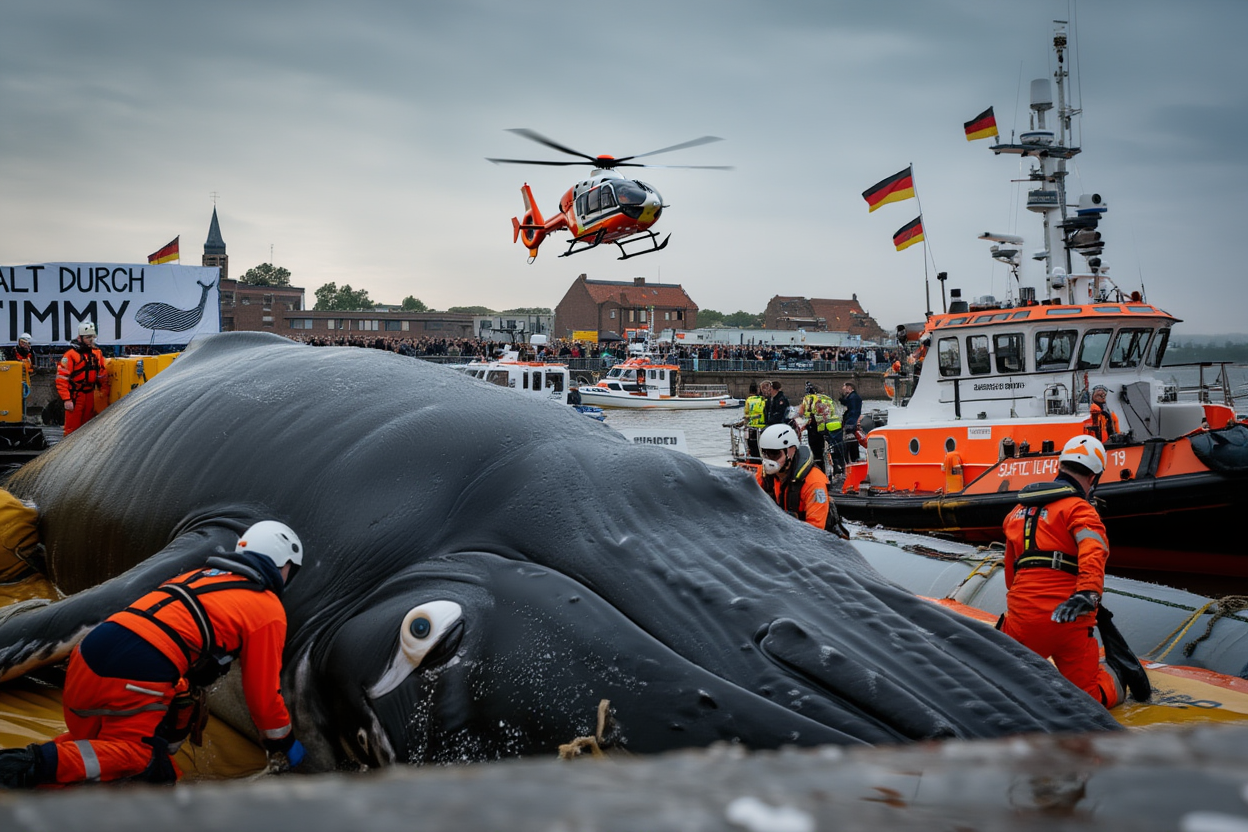 A dramatic and deeply emotional rescue mission is underway off the coast of Germany, where a team of dedicated experts is working tirelessly to save Timmy, a stranded humpback whale trapped in shallow waters near Wismar. After being stuck for weeks in the shallow, confined area, the 13.5-meter giant is weak, injured, and on the verge of collapse. Timmy’s plight has captured the attention of people around the world, as rescuers fight against the clock to give him a chance at survival.
