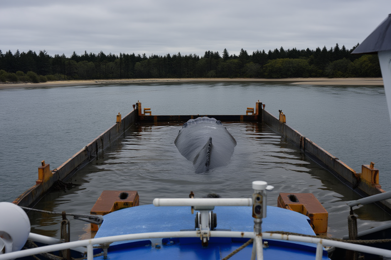 The transport ship that was meant to safely move Timmy to deeper waters has encountered a significant obstacle, delaying the operation. However, higher water levels are expected soon — a crucial factor that could give Timmy the momentum he needs to swim away on his own.