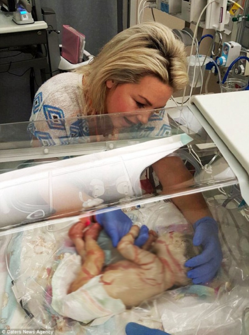 While still in the womb, Harper’s skin tissue grew uncontrollably, forming large clumps on her hands and feet when she was born. Immediately after birth, Foy was placed in intensive care, and doctors considered removing the clumps of skin, which would have meant losing four fingers.
