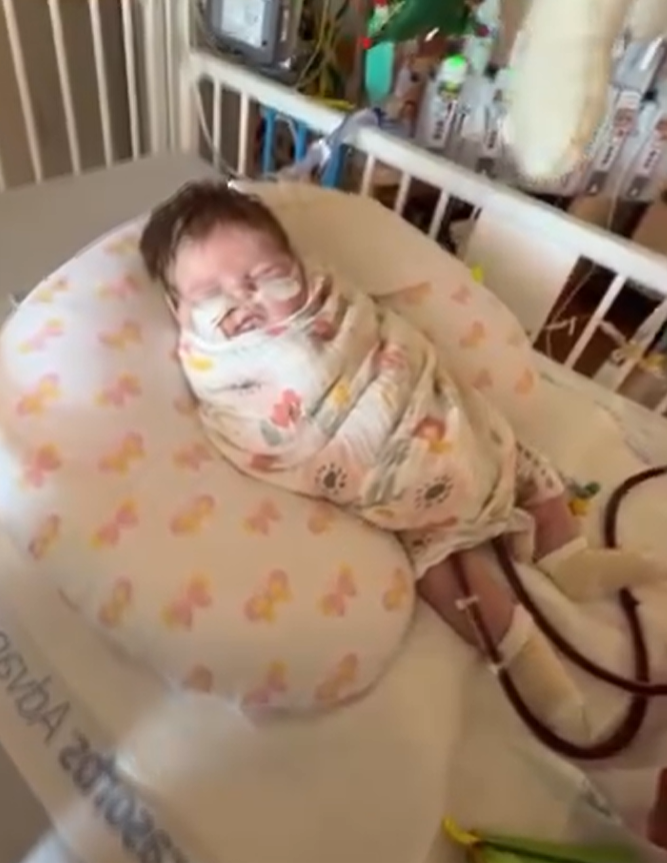 Belle was born into urgency. Instead of the quiet comfort of home, her first days were spent surrounded by machines, doctors, and the steady rhythm of hospital life. Within a short time, she had already undergone multiple surgeries — each one necessary just to keep her alive.