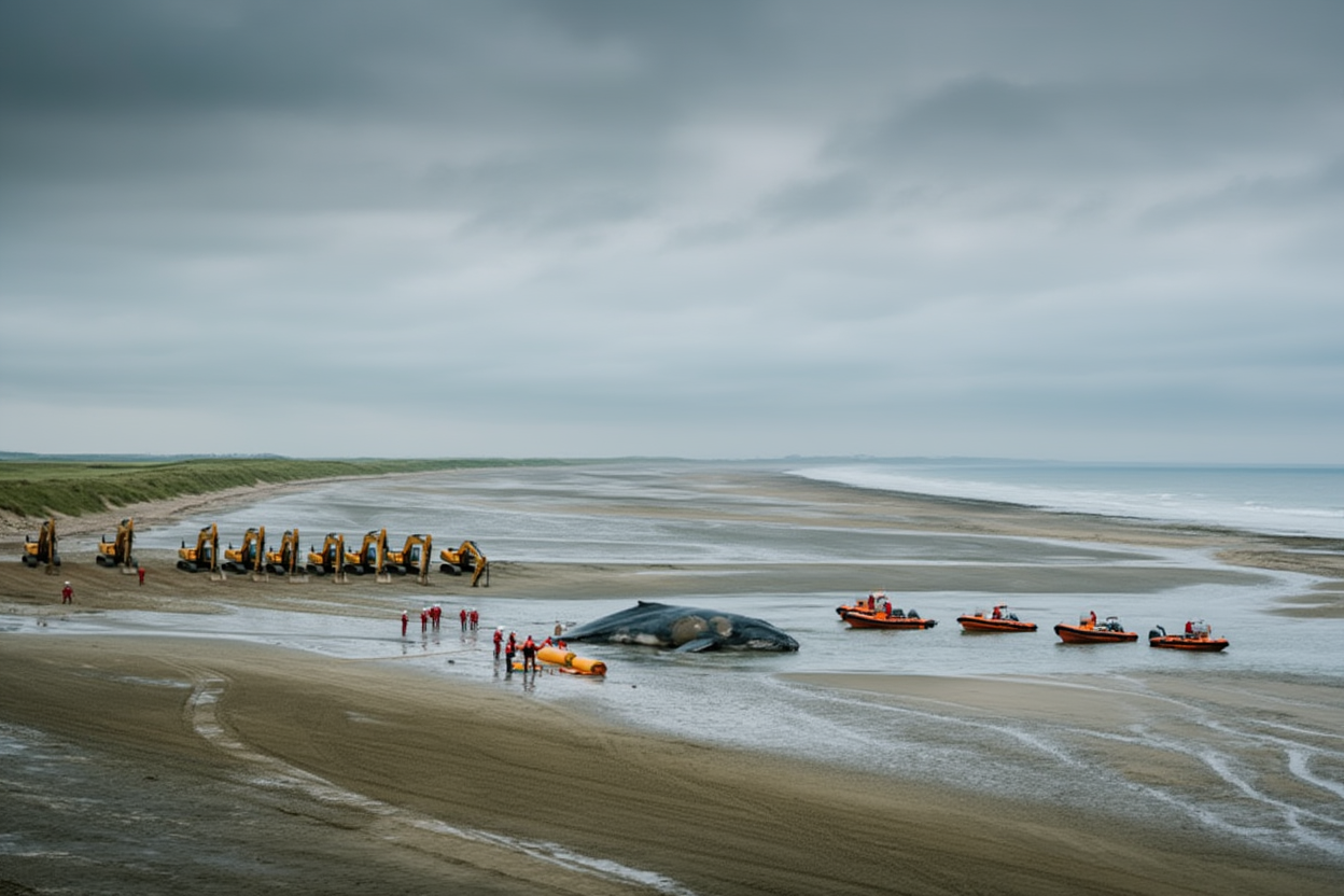 For weeks, Timmy struggled to free himself from the shallow, perilous waters that held him captive. Experts had feared for his survival, as every attempt to rescue him seemed to fall short. The rising tides and changing winds, however, have given this massive creature the push he so desperately needed. Timmy’s enormous body, once stuck in the sand and surf, is now lifting with the pull of nature, slowly gaining momentum as he moves further from shore.