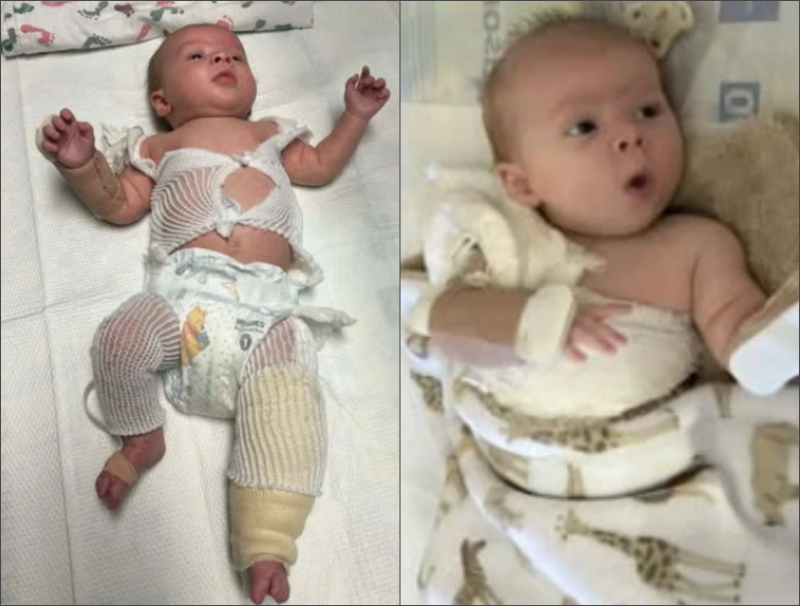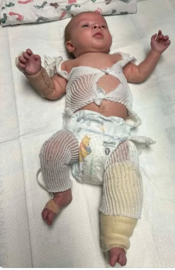 By what his family calls a miracle, he made it through the most critical phase. Doctors performed a delicate skin graft procedure, using healthy skin to help heal his wounds. Though his small body now carries scars, they stand as a powerful reminder of his strength.