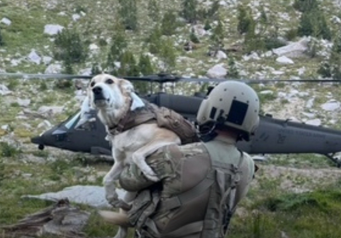 Rescuers on the ground held their breath until his boots finally met solid ground. The dog, though shaken and covered in dust, was alive — a moment of pure relief and quiet triumph.