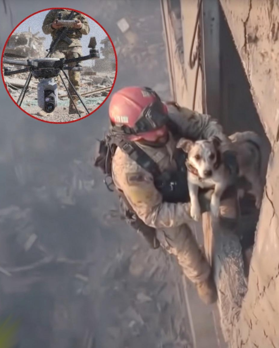Amid the wreckage of a partially collapsed building, a dramatic rescue unfolded when a lone dog was discovered stranded on the edge of a shattered structure. Rescue teams using drones to search for survivors captured the moment that quickly moved hearts around the world.