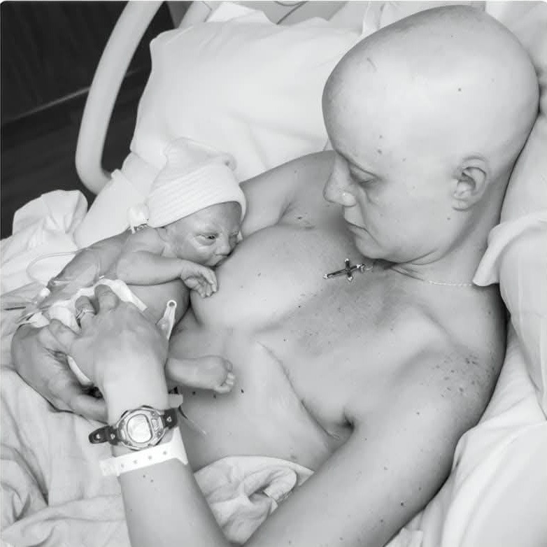 Before giving birth she was forced to undergo a mastectomy and her first round of chemotherapy.