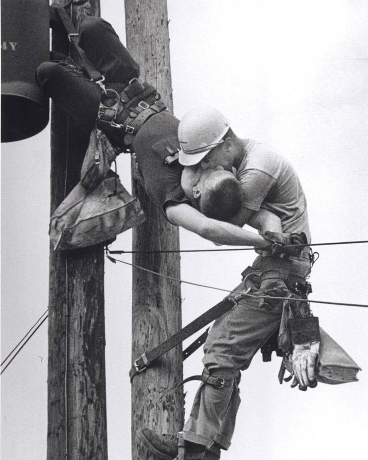 Journalist Roko Morabito, who worked for the Jacksonville Journal, was returning from covering a railroad strike when he saw a worker hanging from a pole. He used the car radio to tell the newspaper to call an ambulance, and after taking the photo, he called again on the radio, saying, “Maybe you’ll want to wait. I think I have a pretty good picture. ”