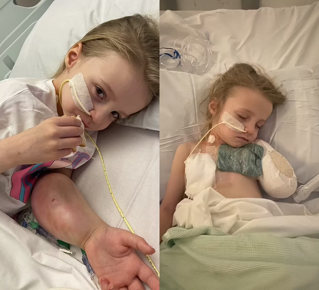 ‘She was very upset when she woke up without an arm, which was really traumatising for her dad and me to watch.