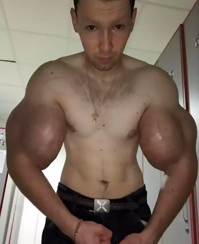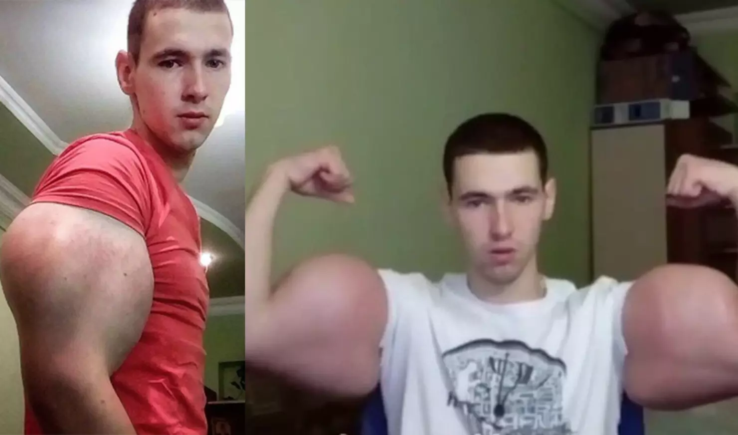 As a result of his bootleg bulking method, the Russian national has now been left with a pair of deformed limbs.