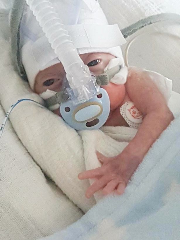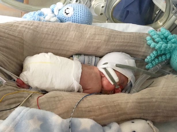 Born at just 22 weeks old, baby Austin is only as small as an adult’s hand and weighs 0.5 kg.