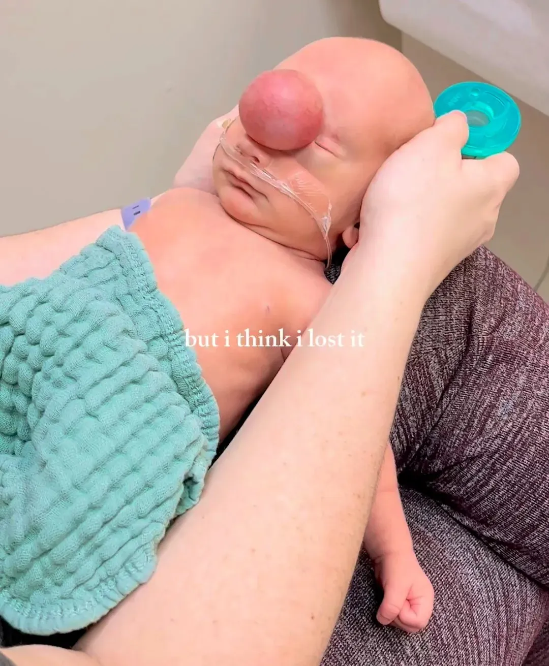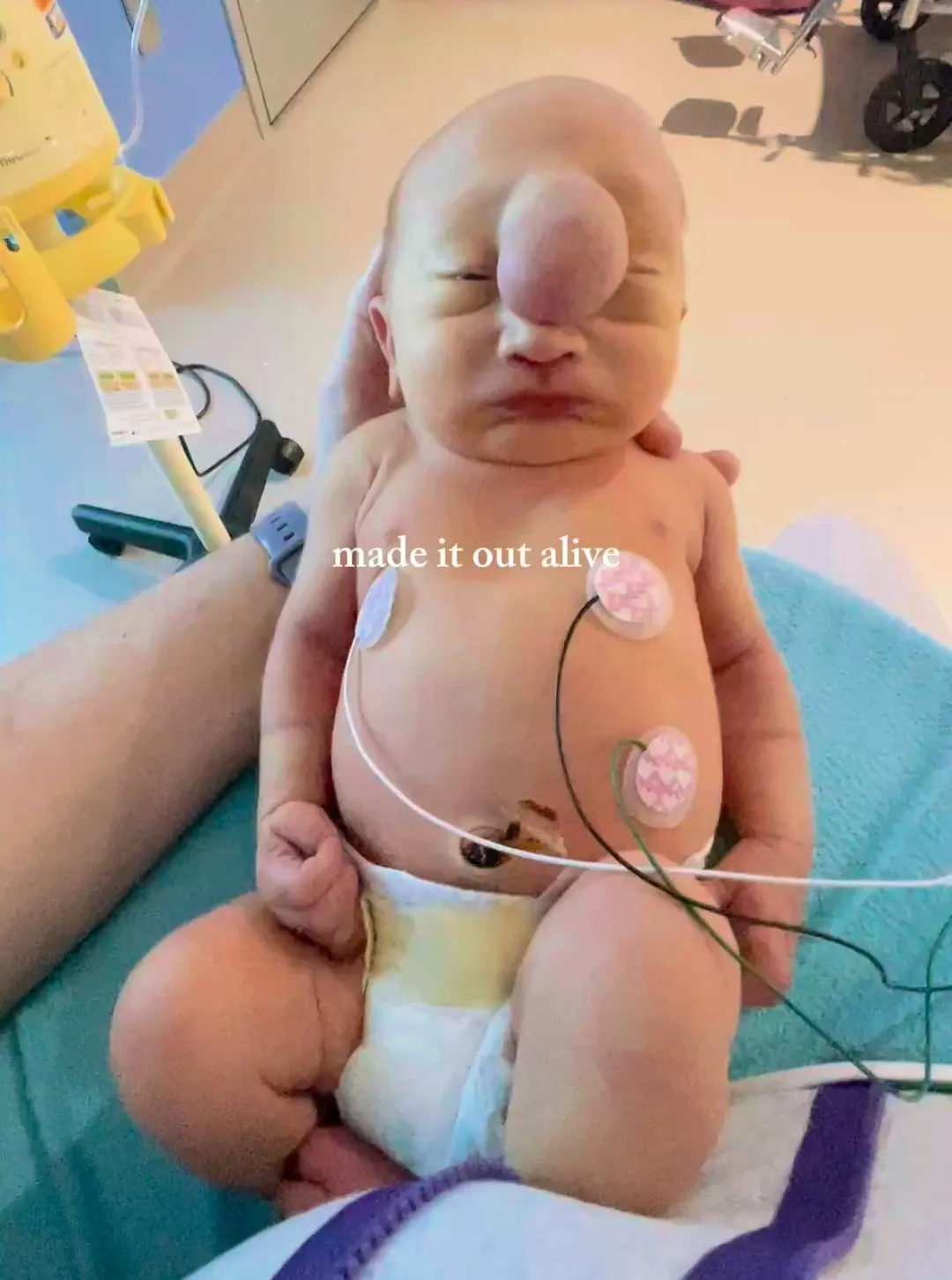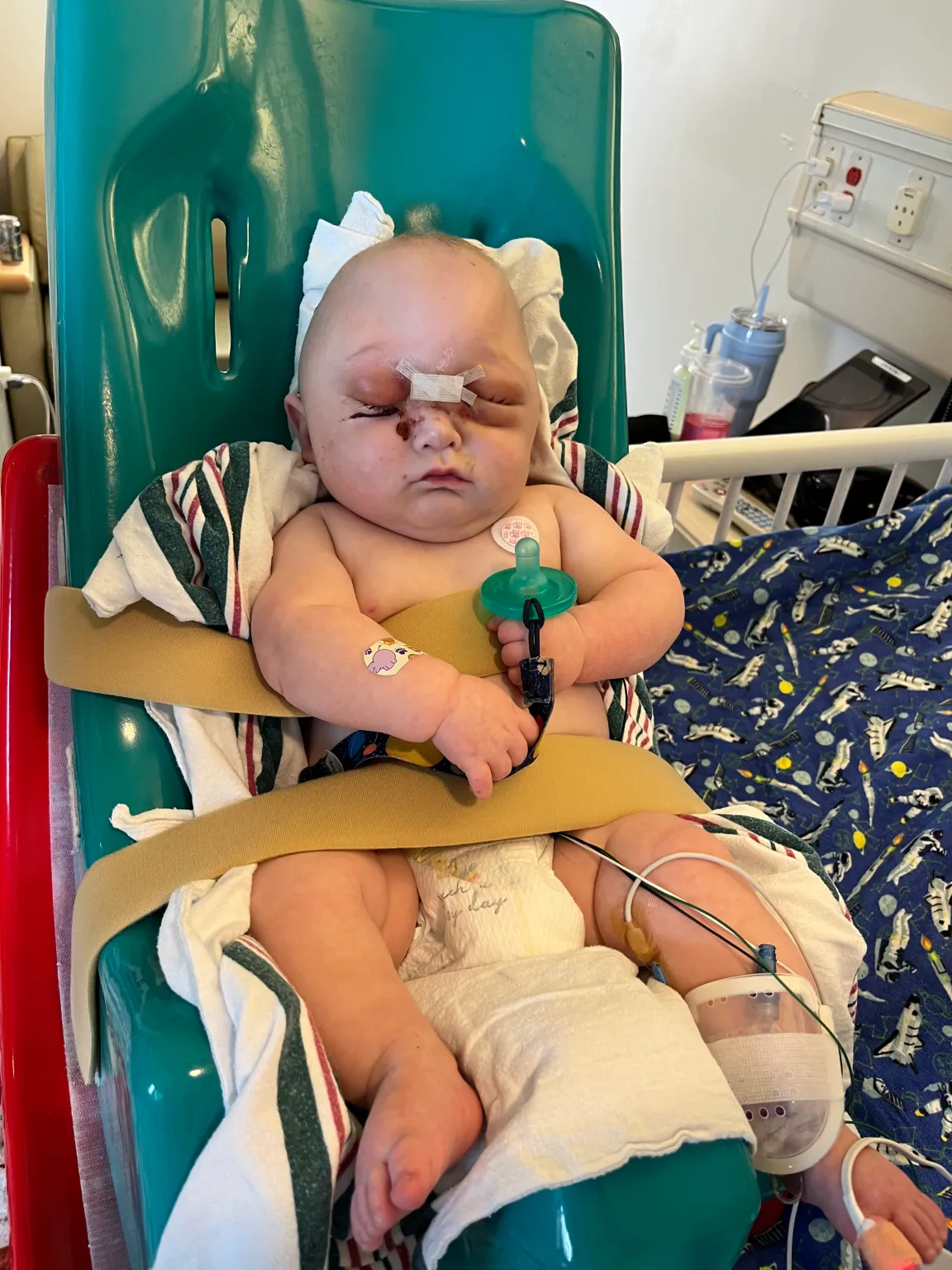 Liam was born with a large sac of fluid – resembling a bubble, which the family nicknamed his “squishy” – on his forehead, and was immediately taken to the NICU.