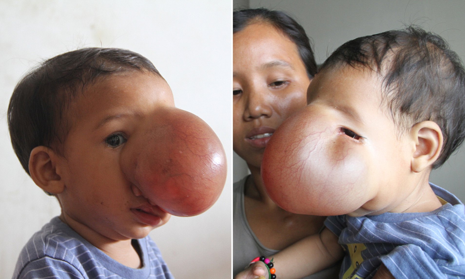 A rare disease has left an 11-month-old girl with a tumour covering half of her face.